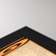 This wrapped canvas offers moody light shining on a motionless segment of simple globe and pitcher shaped terracotta wind chimes that are set in a spiralled effect. This photo is framed by a thin orange line with a tribal-like digital art design along the top and bottom and a black border. The image was altered with photo editing software for a distressed effect. Be sure to check under Framing Options/b> where you can select from two other canvas thicknesses, a number of panel options and sepia or black and white effects.