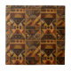 Warm geometric stripe pattern ceramic tile featuring tribal-inspired diamonds, zigzags, and textured vertical bands in earthy brown, terracotta, tan, beige, and charcoal tones. A cozy boho design ideal for southwestern décor lovers, rustic style fans, and anyone drawn to earthy, handcrafted aesthetics.