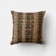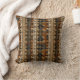 Warm geometric stripe pattern throw pillow featuring tribal-inspired diamonds, zigzags, and textured vertical bands in earthy brown, terracotta, tan, beige, and charcoal tones. A cozy boho design ideal for southwestern décor lovers, rustic style fans, and anyone drawn to earthy, handcrafted aesthetics.
