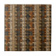 Warm geometric stripe pattern ceramic tile featuring tribal-inspired diamonds, zigzags, and textured vertical bands in earthy brown, terracotta, tan, beige, and charcoal tones. A cozy boho design ideal for southwestern décor lovers, rustic style fans, and anyone drawn to earthy, handcrafted aesthetics.