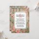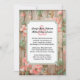 Rustic style Spring wedding invitation done in a pale weathered wood grain look, with coral pink painted looking tree blossoms. A decorative double framed white text area has custom text ready to personalise for your special day. Matching products are available.