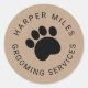 Rustic sticker with a dog paw print and with your personalised text surrounding. Please note, change in text might affect the radius, go to customise further and make the necessary changes. Suitable for small business, dog groomer, veterinarian, dog walker, doggie daycare.