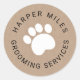 Rustic sticker with a dog paw print and with your personalised text surrounding. Please note, change in text might affect the radius, go to customise further and make the necessary changes. Suitable for small business, dog groomer, veterinarian, dog walker, doggie daycare.