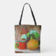 Tote bag featuring a photo of garden still life with a sunny orange pumpkin, a milk can and a red mug. Great gift for foodies, country life and gardening lovers. You can delete the text "God made the country, and man made the town" (William Cowper) or replace it with your own message (click "Personalise this template").