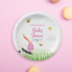 Rustic Stork with Bee & Butterfly Girl Baby Shower Paper Plate