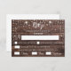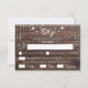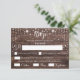 Rustic RSVP card with wood effect background. White font and blank spaces to fill in the guest's details. Includes choice of meals.