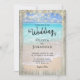 This rustic beach wedding design features a beautiful seascape with ocean waves rolling onto the sand, framed with rustic wood, and decorated at the top with string lights. These wedding invitations are perfect for destination weddings, as well as any beach and coastal themed wedding.
