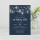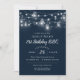Affordable custom printed birthday barbecue dinner invitations with an easy to use template for customisation. This rustic chic design features strands of glowing string lights and mason jars on a dark navy blue background. Personalise the invite with your birthday BBQ party details or customise the text to use for any event. Use the design tools to choose any background colour, add photos and customise the text fonts and colours to make a unique design for your birthday cookout.