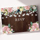 Rustic String Lights Blush Floral Wedding RSVP Postcard