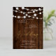 A country Rustic string lights brown wood photo wedding with an elegant brush script, perfect for barn, outdoors wedding, spring summer and fall with real gold foil.