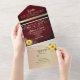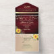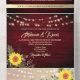 Rustic String Lights Burgundy Sunflower Wedding All In One Invitation
