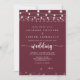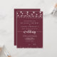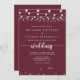 This rustic string lights burgundy wedding invitation is perfect for a classic wedding. The design features beautiful hand-painted string lights with splendid stars in a burgundy background.