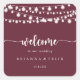 Rustic String Lights Burgundy Wedding Welcome Square Sticker