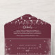 Rustic String Lights Calligraphy Burgundy Wedding All In One Invitation