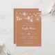 Affordable custom printed couples shower invitations with an easy to use template for customisation. This rustic chic design features strands of glowing string lights and mason jars on a dusty terra cotta orange background. Personalise the invite with your party details or customise the text to use for any event. Use the design tools to choose any background colour, add photos and customise the text fonts and colours to make a unique design for your couples wedding shower.