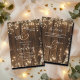 An elegant wedding invitation with string lights, white floral and elegant calligraphy that you can customise with your details.