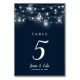 Affordable printed wedding table number cards with a simple DIY template for customisation. This rustic chic design features strands of glowing string lights and mason jars on a dark navy blue background. Personalise each table number that you need and add each to your cart individually (note: adding a bulk number of cards to your cart will result in printing with all the same number). Use the design tools to choose any fonts and colours you like or upload your own photos to make a one of a kind design for your wedding table decor!