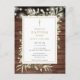 Featuring pretty string lights and delicate watercolor greenery leaves on a rustic wood panels background and an elegant gold crucifix, this baptism or christening invitation can be personalised with your special information. Designed by Thisisnotme©