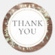 Featuring pretty string lights and delicate watercolor greenery leaves on a rustic wood background, this elegant bridal shower thank you sticker is perfect for envelope seals and favour stickers. Designed by Thisisnotme©