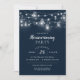 Affordable custom printed housewarming party invitations with an easy to use template for customisation. This rustic chic design features strands of glowing string lights and mason jars on a dark navy blue background. Personalise the invite with your party details or customise the text to use for any event. Use the design tools to choose any background colour, add photos and customise the text fonts and colours to make a unique design for your housewarming party.