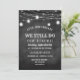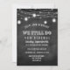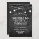 Rustic country, chalkboard anniversary vow renewal invitations- Old, vintage look chalkboard background. Top is adorned with rustic country, vintage mason jar lanterns and romantic outdoor string lights. Reads 'We Still Do' in western style lettering with 'Vow Renewal' beneath and anniversary year above in curved lettering. Anniversary party details, including RSVP information, are below. Back has coordinating, solid charcoal grey background. Note: All images are printed. Not actual chalkboard. Use the Customise It button to change anything - font styles, sizes, colours, or placement. Romantic country invites for summer or fall, outdoor rustic anniversary party, chalkboard wedding theme, backyard wedding, and western or vintage wedding anniversary styles. We have more anniversary party invitations and matching mason jar rustic party decor in our Zazzle.com/angela65* shop.
