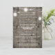 Trendy, rustic wood and mason jar lights couples shower invitations for rustic country wedding styles- Vintage barn wood planks background in faded, grey taupe antiqued effect. Across the top are rustic country mason jars and romantic string lights. Personalised with couple's names in coordinating, palest grey with shadow effect. An elegant scroll border separates the introduction and names from the wedding details. Back has matching rustic wood background with country lights. Note: All images are printed. Use the Customise It button to change anything - font styles, sizes, colours, or placement. Perfect rustic country couples shower engagement party invites for vintage wedding themes, barn wedding styles, rustic weddings, country weddings, summer wedding, casual outdoor weddings, or country western weddings. We have coordinating, rustic wood wedding supplies and decor in our Zazzle.com/angela65 shop. Simple, elegant and rustic engagement shower invites ready to be personalised with your own details.