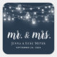 Rustic String Lights Mr. and Mrs. Wedding Monogram Square Sticker