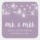 Custom printed stickers personalised with your Mr. and Mrs. monogram and wedding date, perfect for wedding favour labels, welcome bags or envelope seals with your invitations. The design features glowing string lights and mason jars on a dusty purple background. Use the design tools to choose any background colour, change the text fonts and colours or upload your own photos to create a unique one of a kind design.