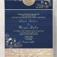 Rustic String Lights Navy Blue Wedding All In One Invitation