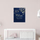 Welcome your guests in style with our elegant wedding poster, featuring a chic rustic barn wood design in navy blue. Adorned with gilded gold floral lace and twinkling string lights, this modern yet country-inspired piece sets a sophisticated tone for your special day.