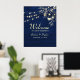Rustic String Lights Navy Blue Wedding Welcome Poster