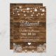 Pretty, rustic design with strings of glowing lights over wood and a lace bottom border.