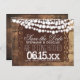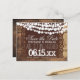 Rustic Country Save the Date Postcards with a background of rustic wood and vintage brown paper with glowing strings of lights at the top. These country wedding save the date postcards have room on the back for your return address and a blank space for you to address the postcards to your guests. These are great for country weddings and barn weddings.