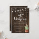 Rustic String Lights Succulent 40th Birthday Party Invitation featuring festive strings of lights and a cute potted bag of succulents and cactus on a rustic wood background. Easily add your details for a fun, custom invitation. The text is editable for any year: 21st, 30th, 50th, 90th - go wild! Great for events for any gender or age!