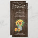 Rustic Wood String Lights Mason Jar Sunflowers Wedding Program Card