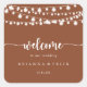 This rustic string lights terracotta wedding welcome square sticker is perfect for a classic wedding. The design features beautiful hand-painted string lights in a terracotta background.