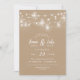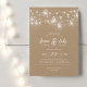 Affordable custom printed wedding invitations with an easy to use template for customisation. This rustic chic design features strands of glowing string lights and mason jars on a faux kraft paper background. Personalise the invite with your wedding details or customise the text to use for any event. Use the design tools to choose any background colour, add photos and customise the text fonts and colours to make a unique design for your wedding.