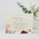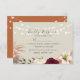 This RSVP card features a modern blend of country and boho styles, set against a backdrop of rustic burnt orange and burgundy florals. Delicate string lights add a touch of whimsy, while simple calligraphy script ensures an elegant and inviting look. It’s a perfect reflection of your wedding's unique blend of sophistication and charm.