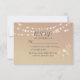 Elegant rustic RSVP card for a fall or barn wedding, featuring faux string lights, soft gold floral lace and trendy calligraphy script. A warm, romantic design perfect for autumn or evening receptions. Personalise with guest meal choices and response deadline. Matches the Rustic Wood String Lights Wedding Invitation Suite.