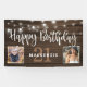 Rustic String Lights on Wood Birthday Banner to announce their birthday in style! Rustic wood siding and string lights set off space for your custom text and TWO photos! Great for birthday parties and receptions! It's fun to have one photo of the birthday person as a child and also a current one! Easy to customise with text, fonts, and colours. You can even change the colour of the typography!