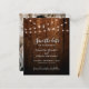 This budget rustic save the date photo card features a warm wood background accented with softly glowing string lights, creating a cosy and romantic ambiance. The elegant mix of handwritten script and sans-serif fonts adds a touch of sophistication, making it perfect for boho, barn, country, farmhouse, fall, woodland, or outdoor weddings. Designed to capture attention while maintaining a timeless aesthetic, this affordable card ensures guests mark their calendars for the special day. Ideal for couples who want a charming yet elegant way to announce their wedding, this save-the-date beautifully blends rustic charm with modern elegance.