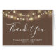 This Thank you card features a design of a string of hanging glowing lights with a rustic wood illustrative background. Add your wedding photo inside (optional, you can remove it) and a personal message. For enquiries about custom design changes by the independent designer please email paula@labellarue.com BEFORE you customise or place an order.