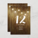 Rustic String Of Lights Country Table Number Card. A beautiful country barn wood design with sparkling lights. Simply add your custom details to the front and back of the card via the easy 'Personalise This Template' option. There are a choice of sizes, shapes and paper types to suit the design.