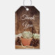 Thank your guests for attending your casual yet classy bridal shower or farm style marriage when you attach the charming Rustic Succulents and Barn Wood Wedding Favour Tag to their party favour or small gift. These country chic custom ranch theme favour tag cards feature a floral photograph of a terra-cotta flower pot filled with a green succulent plant, two pine cones and white satin fabric with a brown weathered barn wood background.