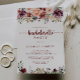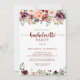 This rustic summer floral bachelorette party invitation is perfect for a simple event. The design features burgundy, pink and blush watercolor flowers with green leaves in a brownish stained background.