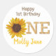 Rustic Sunflower 1st Birthday Classic Round Sticker