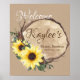 Rustic wood slice and sunflowers decorative shower welcome sign to compliment our invitations.