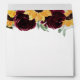 This Rustic Sunflower Country Wedding return address envelope is the perfect compliment for to the rustic sunflower and roses wedding invitations. The envelope features watercolor floral sunflowers and burgundy roses with sage greenery. Personalise with your return address on the flap back.