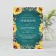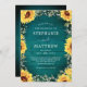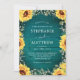 Rustic Sunflower Babys Breath Border Teal Wedding Invitation