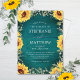 These wedding invitations feature a watercolor floral border of sunflowers, baby's breath and foliage on a teal wood background. Personalise them with your own text. Matching wedding suite available, Please visit our store to see the full range of items that you can personalise for your wedding.